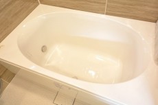 バスルームは木目調のパネルを使用しているので、なんだか落ち着きますね♪