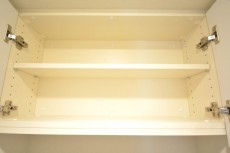 リビングダイニングのキッチン手前にも収納棚がありました。