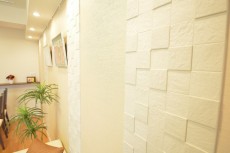 壁にエコカラットがあしらわれた、約9.8畳のおしゃれリビングダイニング。