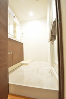 つづいて洗面室です。入口入って、右手にバスルーム、左手に洗面化粧台と