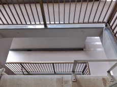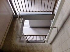このお部屋は収納がありませんので、部屋数に余裕があれば、ここは収納部屋としてお使い頂いてもいいかもしれませんね。北側の窓を開けると、廊下側の吹抜けが見えました。エアコンの室外機を置けるようになっていました。