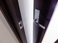 玄関を開けると、白いクロスとダークブラウンのドアのコントラストがとってもオシャレなお部屋でした。