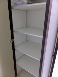 廊下にも収納がありました!!棚は可動式なので掃除機や大き目の荷物を中に入れておけますね☆