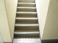 エレベーターはありません。こちらの階段からお部屋まで上がりたいと思います。最上階でも3階ですから丁度良い運動になりますね!