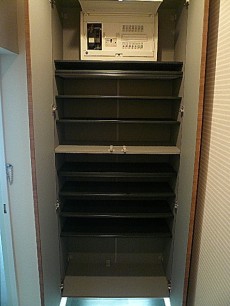玄関収納扉を開くとたっぷり仕舞えそうですね。棚の調整も可能なので使い勝手もバッチリですね。