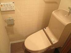 ウォシュレット付トイレです。収納場所がないので後付で付け、レースのカーテンなどで目隠しにしてみてはいかがでしょう~