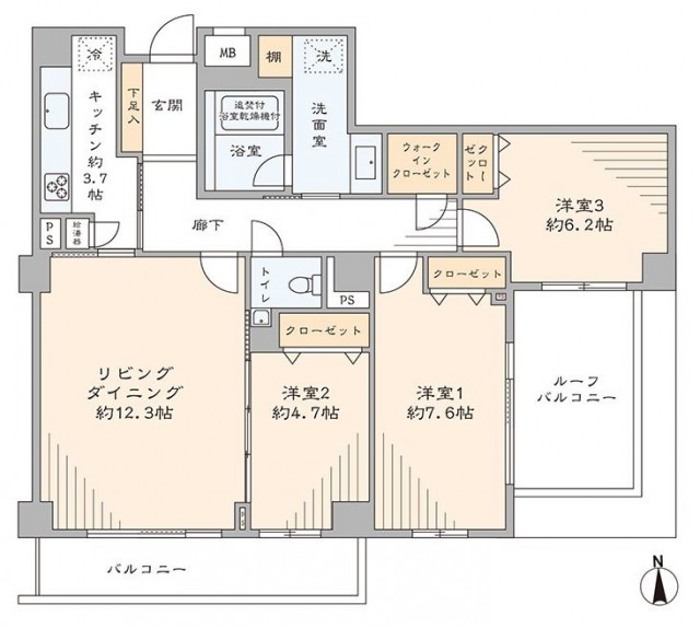 南向き角部屋 3LDK 85.35㎡ ルーフバルコニー付き!