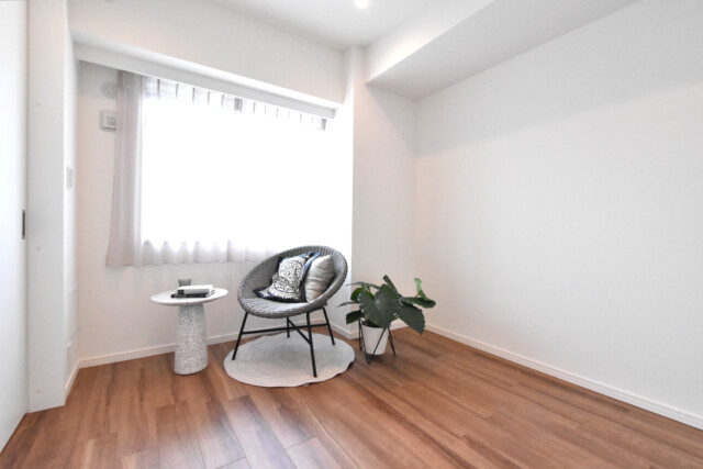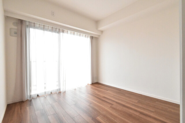 LDKと同じバルコニーに面したお部屋です。凹凸の少ないきれいな形なのでベッドなどの家具も置きやすくベッドルームにぴったり。ワンサイズ大きなベッドも検討してみたくなりますね。