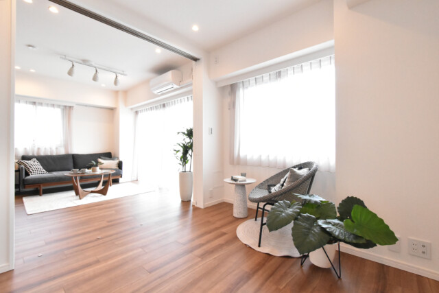 リビングダイニングと隣のベッドルーム共に南向きのお部屋。