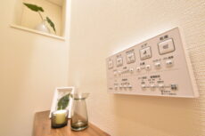 ブラウンの木目パネルは鏡面仕上げで高級感たっぷり。お風呂に浸かって頭が空っぽになる所だからこそ雰囲気って大事ですよね。追い炊き機能はワンタッチでお風呂を沸かしてくれたり、冷めれば自動で温め直してくれたり。うっかりお風呂を溢れさせてた時代からすると夢のようです(笑)浴室換気乾燥機も付いているので、快適空間を守るためにも入浴後はを忘れずに換気をしましょう!
