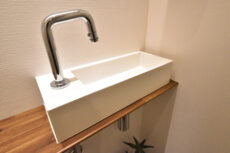 手洗い器が別で設置されています。カウンター上にあるので、手洗い石鹸をおいておくこともできます。お子様のトイレの後の手洗い習慣もしっかりと身につきそうです。