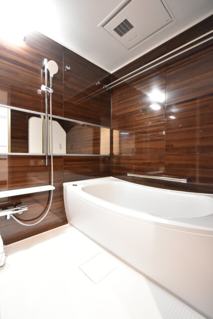 清潔感のある明るいバスルームは追焚き・浴室乾燥機付き。
