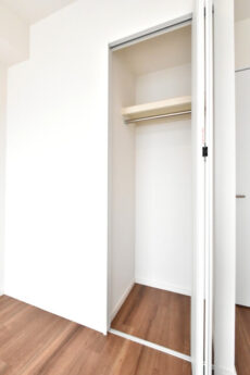 お部屋の広さの割に大きなクローゼットが確保されています。左側は奥行が深くなっているので嵩張るものでも大丈夫。頼もしい収納です。