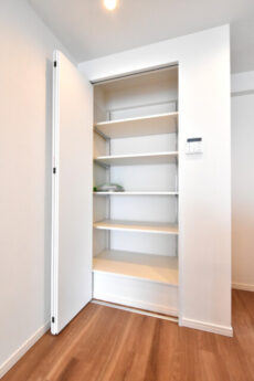 玄関右側の扉はシューズインクローゼット。収納力は抜群!靴以外にも、お部屋の中には持ち込みたくない物など置いておくことも出来ますよ。