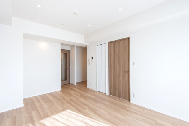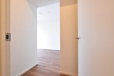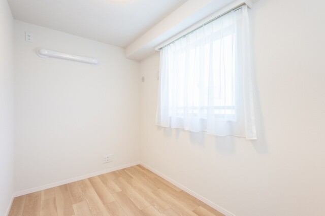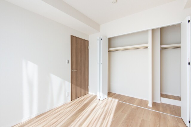 窓を背にしてお部屋を見るとこんな感じ。幅はそれほどではありませんが、天井まであるクローゼットが確保されています。こちらのお部屋は子供部屋やテレワーク用のお部屋としても良さそうですね!
