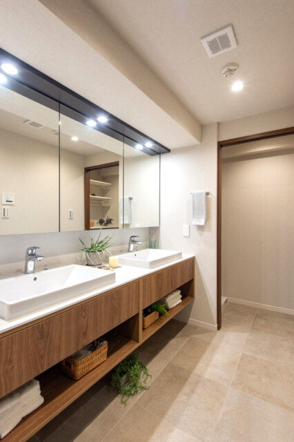 洗面ボウルも幅があり小物を置けるスペースになっています。