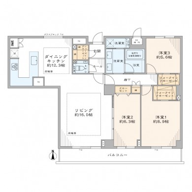 こちらのお部屋からもルーフバルコニーの出入りが可能です。