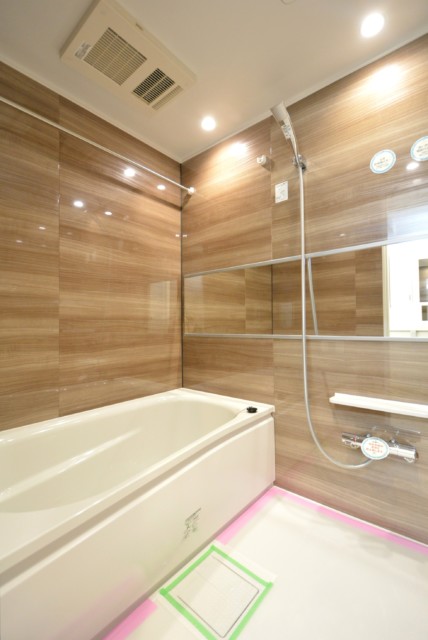 ブラウンのパネルを使った落ち着いた雰囲気の浴室です。疲れを流すには落ち着けるのが一番(^^)