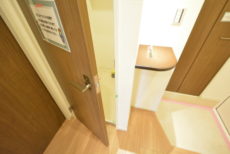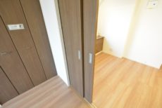 玄関ドア横にはテレビモニター付きインターホンが設置されていて、お部屋の中から訪問者を確認する事が出来ます。返事をする前にチェックすれば、セールスなどにつかまる事もありません。