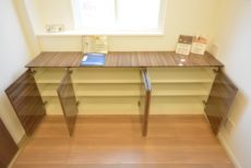 窓にはインナーサッシ設置。防音をはじめ断熱や防犯効果のある優れものです。窓際のカウンター下は造作の収納になっていました。幅が広く収納力抜群ですよ。