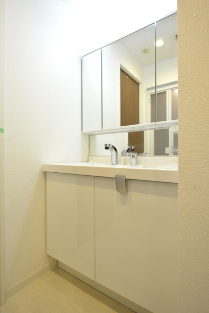 まずは三面鏡付きの洗面台。