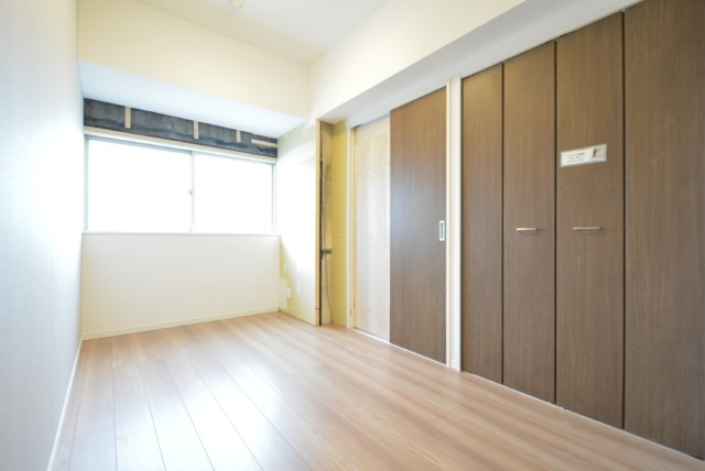 こちらも工事中のようですね。シンプルな内装で家具やカーテンを幅広く選べそうな洋室です。
