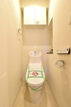 【トイレ:洗浄機能一体型・カウンター・吊り戸棚付き】