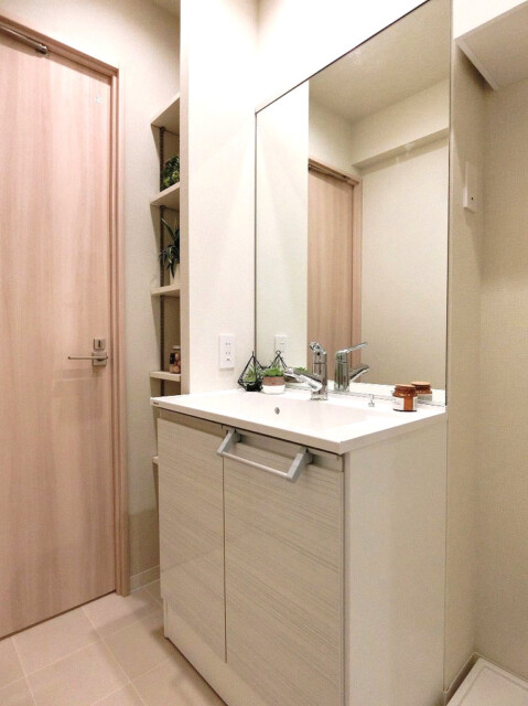 こちらには洗面台、リネン庫、洗濯機スペース、浴室がまとまっています。