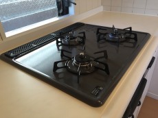 3つ口コンロはお料理好きの方には嬉しいですね♪シンクは大きめで使い勝手◎