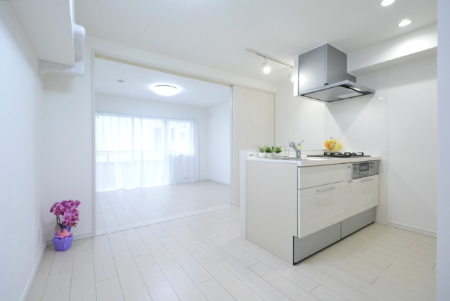 お部屋の雰囲気に合わせた白を基調とした調理台。