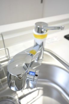 水栓は浄水機能付きシャワー水栓。切替え一つで気軽に美味しいお水が使えます。お茶にお料理にと何にでも使えますが、氷には使わない方がいいらしいですよ。氷といえども長く置いておくと雑菌が増えるとか。テレビ情報ですけど^^;)