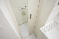 廊下反対側には洗面室。ここには洗面台、トイレ、浴室がまとまっています。