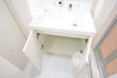 収納は三面鏡裏のキャビネットと洗面台下。個人的に、キャビネットは細かい物が多くなりがちな洗面周りに無くてはならない収納だと思っています(^^)