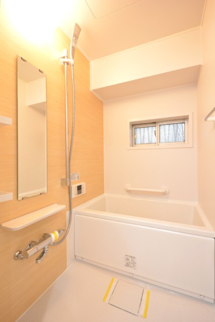 浴室は、ブラウンの木目パネルを使った温かな雰囲気。リラックスタイムにピッタリのホッと出来る空間です。なんと!窓も付いていて、換気などに活躍してくれそう。ただし、外は廊下なので入浴中は開けない方がいいかもしれませんね^^;