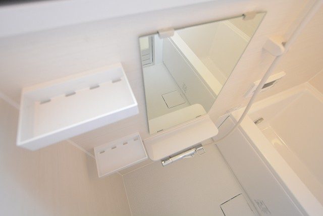 ミラーの両サイドには棚もあるので、歯ブラシや基礎化粧品などの小物などはこちらに収納することが出来ますよ。