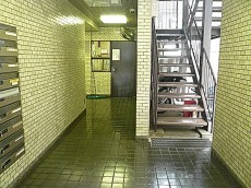 スッキリとしたキレイなエントランスです。左手に集合ポスト、正面に管理室、正面左折しますとエレベーターがあります。