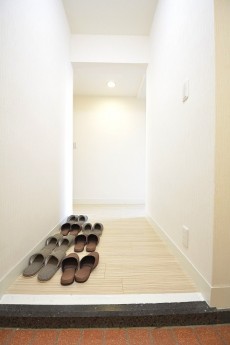 廊下は突き当りから左右に伸びていて、右側の廊下はLDKや洗面室へ続いています。