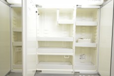 こちら側にある収納棚は奥行があって見かけより収納力がありそうです。ただし奥の物が取りにくいので、細かな物を入れるなら収納ボックスなど使うことをお勧めします。