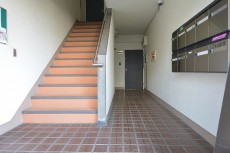 エントランス前の道路がゆるい坂道になっているので、エントランスは階段を上がった先にあります。