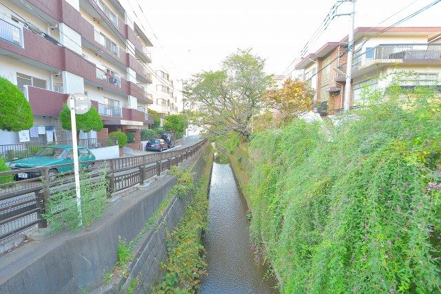 駅周辺の賑やかさとはかけはなれて、マンション周辺はすっかり静かな住宅街。水路沿いを歩いていけます。お天気のいい日にここを散歩したり、多摩川までふらりと行ってみたり・・・自然が豊かな環境も魅力的です。