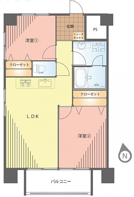 51.52㎡ 3LDK 。南向きのバルコニーなので、陽当たり・風通し良好です☆
