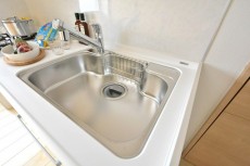 シンクが大きいので食器洗いがらくらくです♪浄水器水栓つきなので、とても安心です。