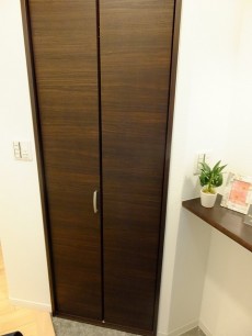 玄関右手にはシューズボックスが付いています。中の棚板は高さを自由に調節することが出来るのでブーツの様な背の高い履物でも問題なく収納できそうです。