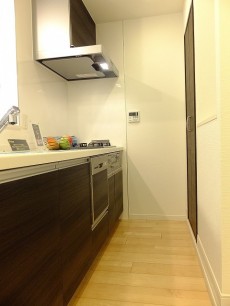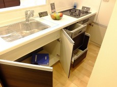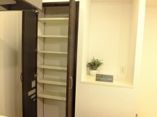 収納については、残念ながら吊棚有りませんが、システムキッチンの向かいに何と、収納棚が設置されているのでご安心下さい^^