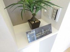 扉の横の壁面には調湿・消臭効果のあるエコカラットが貼られています。