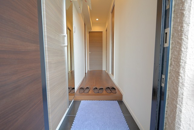 玄関をあがると廊下を囲むように洋室、LDKの扉が並んでいます。