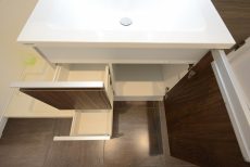 洗面化粧台は鏡の裏や引き出しなど収納が多彩です。