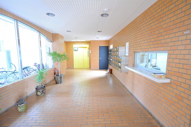 エントランスは道路に面しておらず、タイル敷きの通路の中央付近にあります。