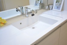 スッキリ片付きそうです。洗面ボウル一体型カウンターでお掃除がしやすいのも
