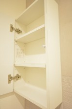 洗面室内にはタオルやシャンプーのストックを保管するのに便利なリネン庫